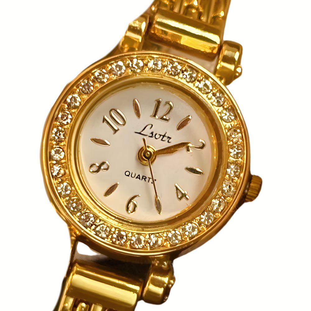 Bring timeless European elegance to your wrist with the ÉclatParis™ French-Style Gold Rhinestone Bracelet Watch. Designed with a refined round dial surrounded by sparkling rhinestones, this watch captures classic luxury with a modern feminine touch. The polished gold-tone bracelet and delicate detailing make it a standout accessory for daily wear, dinner parties, or special occasions.